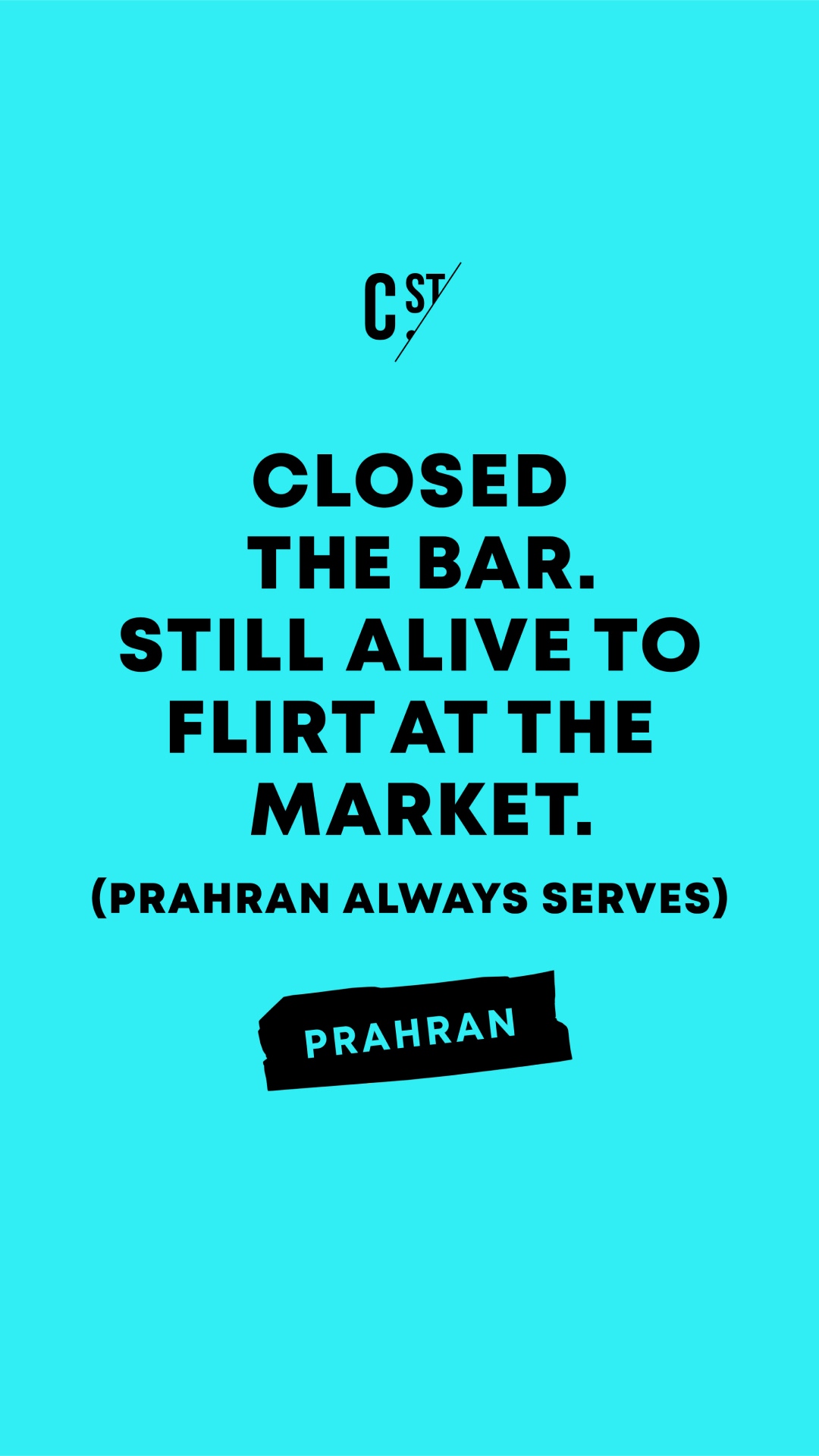 CLOSED THE BAR. STILL ALIVE TO FLIRT AT THE MARKET.